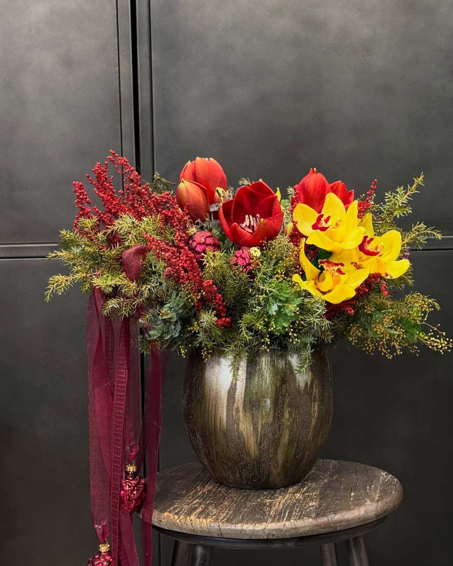 Եթե ցանկանում եք Ձեր տոնական սեղանը կամ Ձեր սիրելիների Նոր տարին դարձնել ավելի գեղեցիկ և խորհրդանշական, մենք հրավիրում ենք Ձեզ այցելել մեր խանութ-սրահ կամ օգտվել մեր առցանց պատվիրել ծաղիկներ ծառայությունից։ Մենք առաջարկում ենք ամանորյա ծաղիկների լայն տեսականի, ներառյալ նրբագեղ խոլորձներ, մաքուր շուշաններ և շատ այլ ծաղիկներ, որոնք կօգնեն Ձեզ ստեղծել կատարյալ տոնական մթնոլորտ և ուրախացնել Ձեր մտերիմներին։ Թող այս Նոր տարին լինի լի գեղեցկությամբ, բույրերով և լավագույն մաղթանքներով։